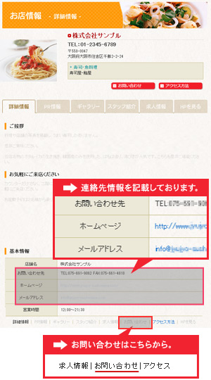 出店(掲載)店舗様へのご相談・ご質問等は、各店舗様に直接お問い合わせください。